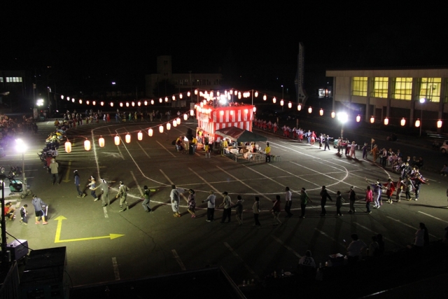 毎年志向を凝らしたグループがやぐらを中心に盆踊りを踊ります。出店や餅まきなど、家族みんなが楽しめるイベントです。