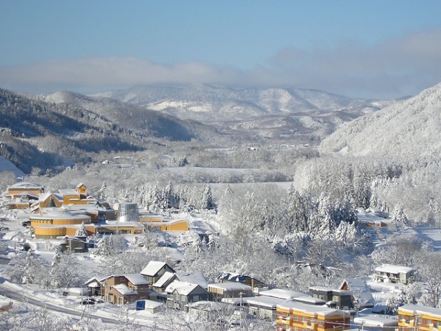 流氷の接岸するオホーツク海から約25㎞内陸に位置する西興部村は、冬はマイナス20度、夏は30度になる日もあるなど、自然環境の厳しい村ですが、全村に光ファイバー網を整備し、オレンジ色の公共施設の街並み、夢施設を拠点にした村づくりを展開しています。