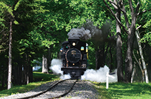 バンガローや車の乗り入れが可能なオートサイトなどが整備されたキャンプ場があり、場内ではSLが走ります。
