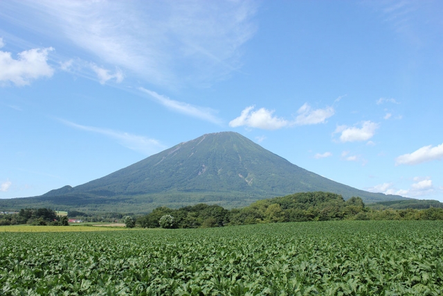 真狩の北部にそびえ立つ羊蹄山。標高1,898mの羊蹄山はその姿から蝦夷富士とも称され、雄大な姿を覗かせます。