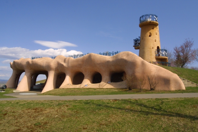 明野ケ丘公園にたたずむ町のシンボル「ピラ・リ」