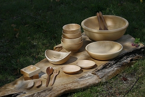 美しい木目を生かした家具や器、カトラリーなど、普段の暮らしに優しさと豊かさを演出します。
