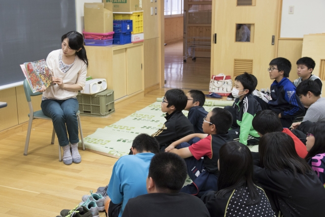 独自で配置している「学校図書館司書」は子どもたちに本の魅力を伝えています。読み聞かせなど様々な活動を通し、心豊かな子どもたちを育んでいます。
