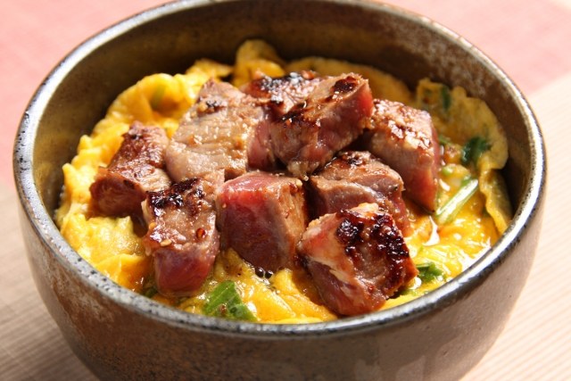 2010年に清水町のご当地グルメとして誕生した十勝清水牛玉ステーキ丼。脂肪分が少なくとてもヘルシーな十勝若牛と鶏卵と特製の味噌だれを使用したどんぶりで、毎年、北海道で開催されている「新・ご当地グルメグランプリ」で3年連続グランプリを獲得し、北海道では知名度が高いご当地グルメです。
