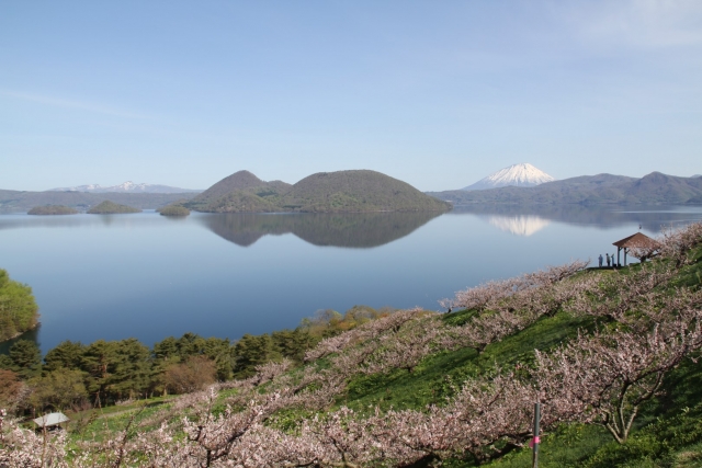 5月中旬頃、洞爺湖を見下ろす小高い山の斜面に約300本の梅が咲き乱れます。天気の良い日は洞爺湖の宇高に蝦夷富士とも呼ばれる羊蹄山の優美な姿とマッチして絶景が堪能できます。