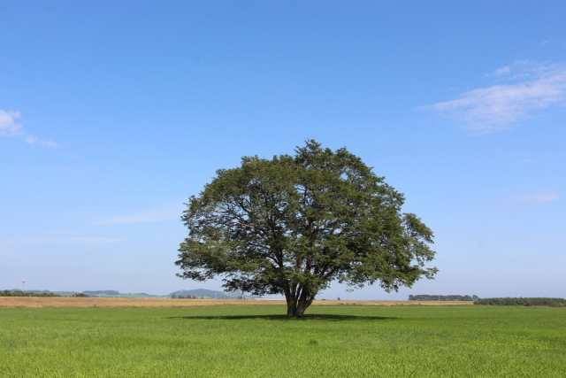 推定樹齢約140年の2本の木が一体化して美しい形を作った珍しい木。