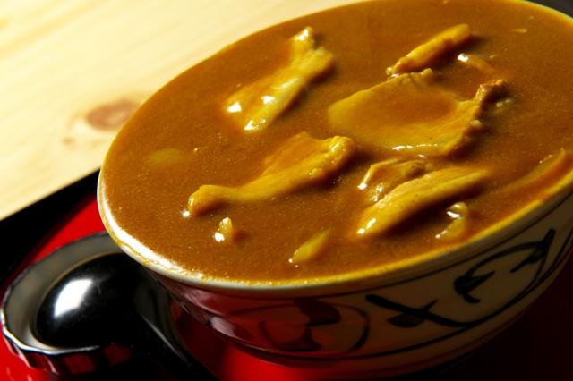 炭鉱の男たちが育てた夕張市民のソウルフード。豚バラ肉とタマネギの入ったとろみのあるカレースープにそばが絡み絶品。