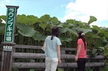 螺湾川に沿って自生する螺湾ブキは高さ2~3mに達する巨大なフキ。かつては高さ4mにも及び、その下を馬に乗って通ることができましたが、なぜ大きくなるのかはいまだに解明されていません。