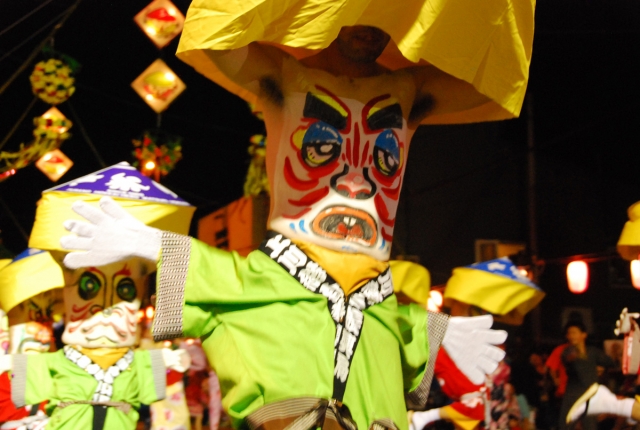 毎年7月28日・29日に行われるお祭りで、参加者はお腹に思い思いの絵を描き(図腹)街中を踊り歩きます。