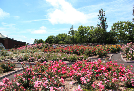 様々なバラが咲き誇る はぼろバラ園
