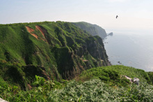 天売島内きってのウミネコの繁殖地。百数十mの断崖絶壁には、数多くの海鳥の営巣を見ることができます。