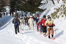 誰の足跡もない雪原を「かんじき」を履いて日本庭園を歩くイベント。