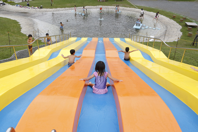 たくさんの遊具に加えウォータースライダーなど水遊びも充実した公園