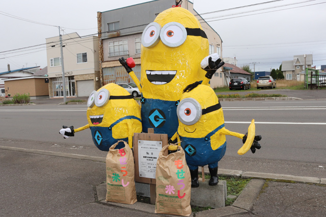 豊穣の喜びを表現したものや、タレント・アニメキャラなどの作品を歩道に展示し、道行く人たちの目を楽しませてくれます。