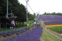 まちのシンボル「北星山」にある町営ラベンダー園、観光リフトに乗って空中散歩を楽しめます。