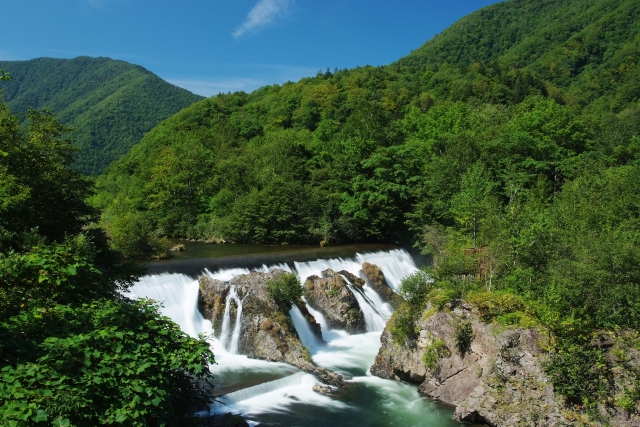札内川の清流が10mの落差で豪快に流れ落ちる「ピョウタンの滝」があり、雄大な自然が人気のスポットです。