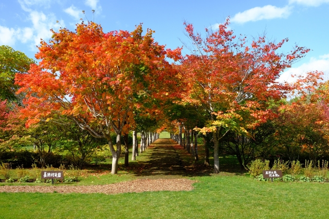 山もみじのトンネルを抜けた先には美術館や彫刻が並んでおり、芸術の世界にゆったりと浸ることができます。