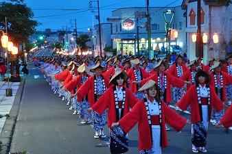 根室の漁業の振興、安全を祈るお祭りで2日間の日程で行われます。市内では千人踊り・ジュニアコンサート、根室港では舟こぎレース、花火大会が行われます。