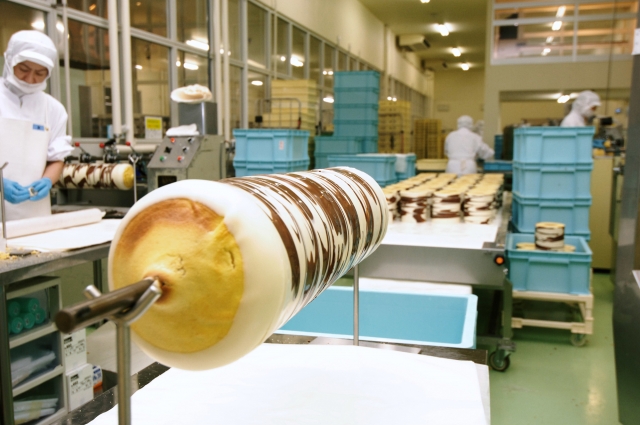 大人気「三方六」の白樺模様が描かれる手順、そして、名前の由来にもなった三方六寸の薪の形に切り分ける様子などの製造工程を一望できます。