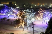 更別村では、毎年12月中旬から2月中頃まで、青や白、黄色といった約40,000球のイルミネーションが農村公園周辺を温かく、華やかに彩ります。