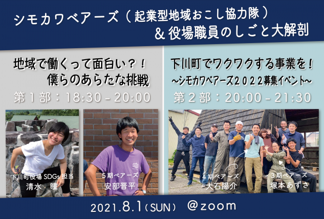 下川町で働き始めた役場職員とベアーズ(5期)の2名をゲストに「地域で働く」についてクロストークをしながら考える