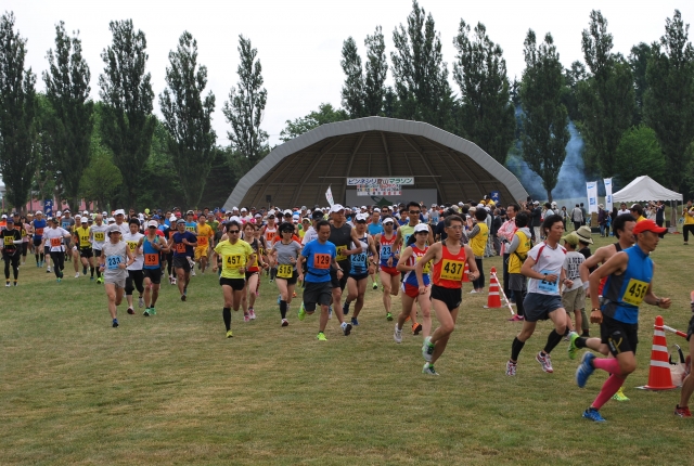 5合目で折り返す30kmコースなど約300人が健脚を競います。
