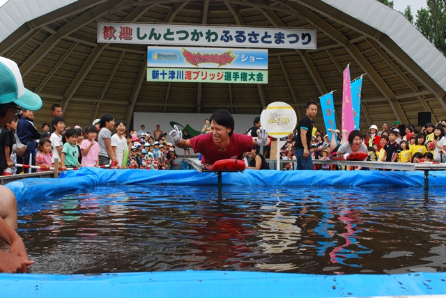 夏の最大のイベントで、「泥ブリッジ選手権」などユニークな催しが行われます。
