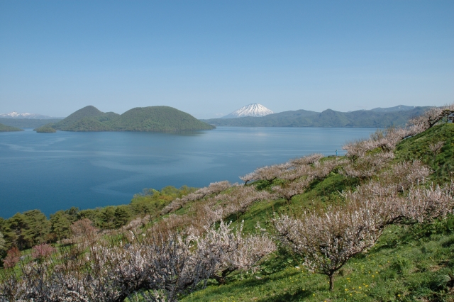 5月中旬頃、洞爺湖を見下ろす小高い山の斜面に約300本の梅が咲き乱れます。天気の良い日は洞爺湖の向こうに蝦夷富士とも呼ばれる羊蹄山の優美な姿とマッチして絶景が堪能できます。