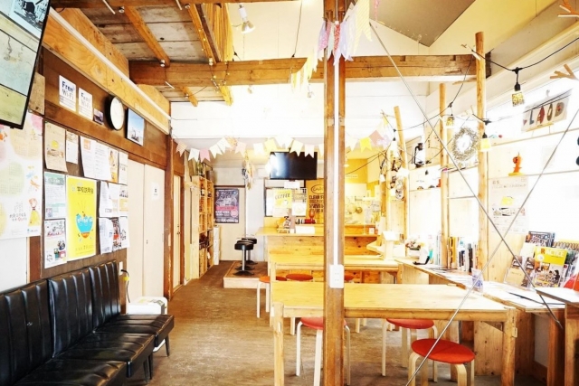 カフェが併設されたコワーキングスペース。様々な人が出会い、つながる場所です。