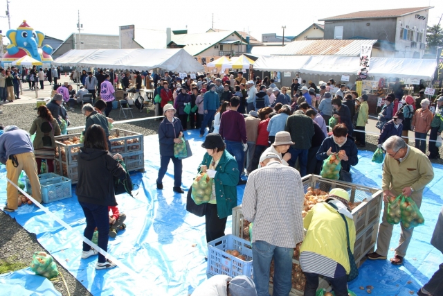 馬鈴薯・たまねぎの詰め放題や抽選会など、秋の収穫を彩るにぎやかなお祭りです。