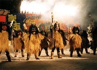 秋田県男鹿半島地方の行事として知られる『なまはげ』に、独自のアレンジを加え開催しています。全身に蓑を纏い、大きな鬼面を被った男達がなまはげに扮し練り歩く姿は迫力満点。