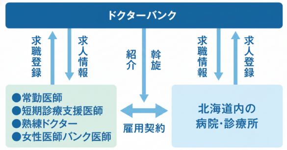 北海道内の病院・診療所への勤務を希望される医師の方に、 医療機関(求人医療機関)を紹介、斡旋。